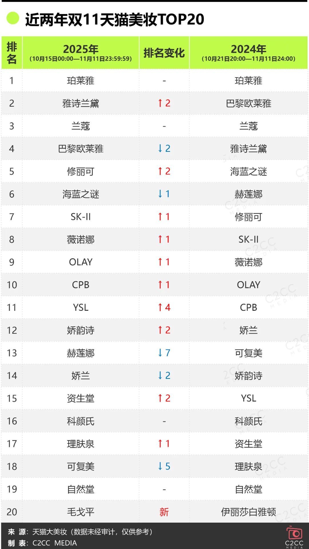 今年双11的快递还没拆完,天猫美妆榜已经出来了!虽然11月14日双11活动正式收官,但核心排位已基本落定。